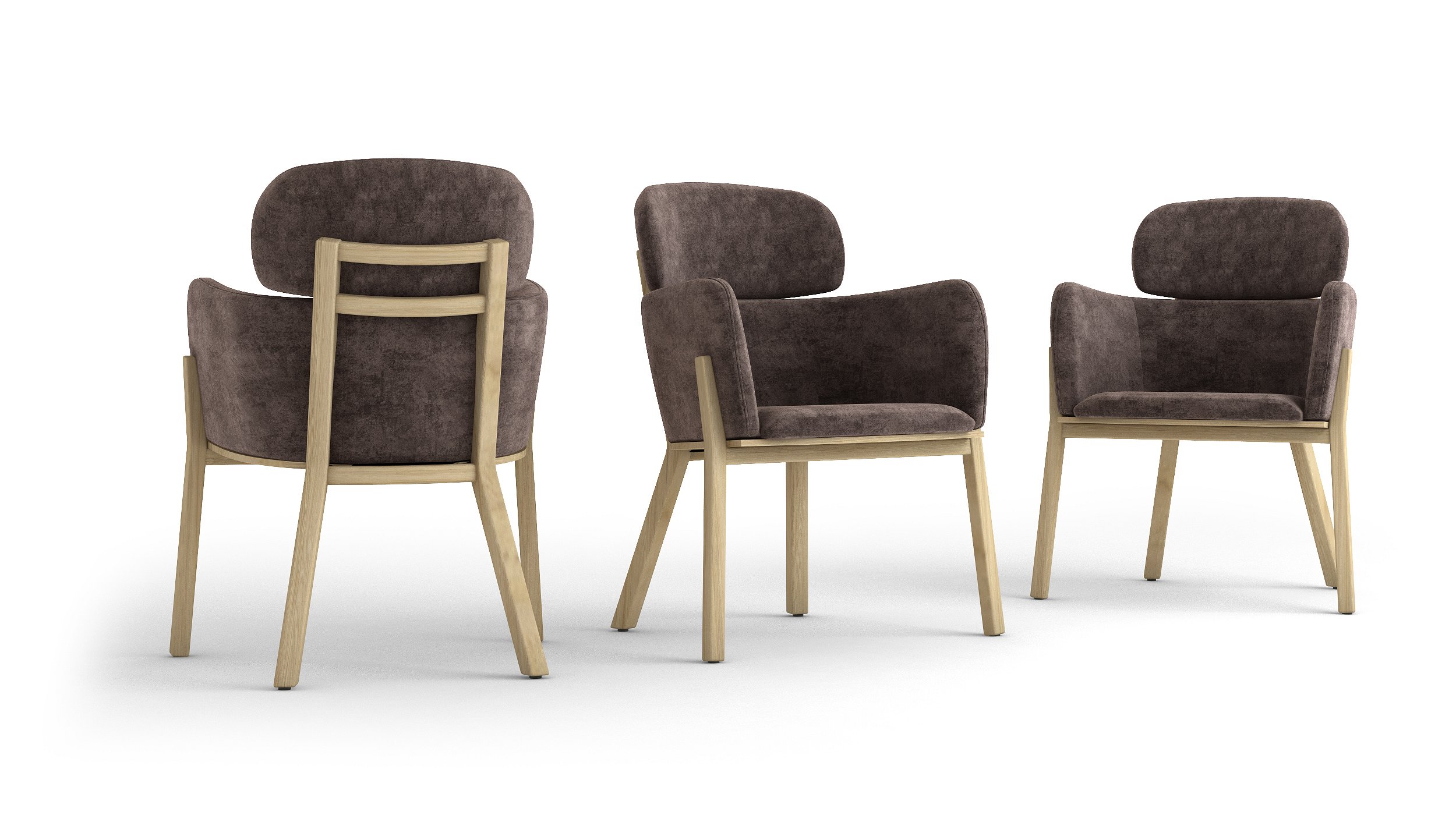 VIVA è una seduta dal carattere deciso, definita dallo stacco visivo tra lo schienale sospeso e la seduta. Questo dettaglio non solo conferisce leggerezza estetica, ma permette una flessibilità ergonomica superiore. La struttura portante in legno si integra con i fianchi imbottiti, creando un design distintivo e architettonico. Telaio a vista in massello di faggio o frassino, con giunzioni a 45° per un'estetica artigianale. Imbottitura ad alta densità con rivestimento in tessuto tecnico o velluto, ideale per un utilizzo intensivo in ambito contract o residenziale.